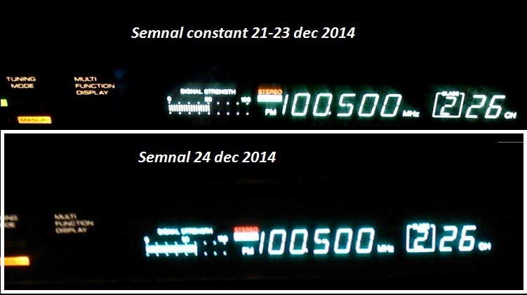 Echipament --> tuner ONKYO Integra T4650 (2x150KHz Wide + 2x110KHz Narrow) + Antena Yagi 3 elementi orientata catre Straseni, locatie - orasul Barlad; Receptii noi : - Radio Moldova 104.9 MHz --> Mandrestii Noi, 170KM, semnal 3/10; - Micul Samaritean 105.4 MHz --> Trifesti, 182 KM, semnal 4/10; Identificarea a fost facut prin comparatie directa cu 100.5 si 107.7 MHz , receptionabile permanent in locatia mentionata. Deasemenea am observat o usoara crestere a puterii la Straseni, in comparatie cu zilele trecute. Probabil ca e si propagarea de vina, dar parca puterea e mai mare decat de obicei. |