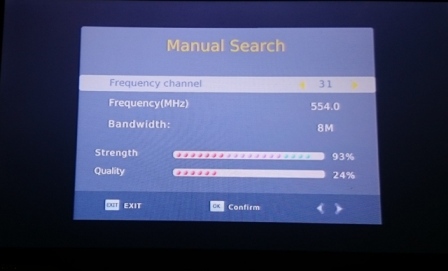 Fie puterea nu e cea nominala, fie antena nu e accordata cu emitatorul, fie nu e la aceeasi inaltime cu antena de analogic... Antena de receptie ATX91 + preamplificator 30db LNA 177 + receptor portabil DVBT Kruker & Matz . Pozitionare - valea raului Barlad (in cea mai joasa zona posibil). Inaltime antena - 8 metri. In zonele de deal ale orasului receptia e fara probleme. |