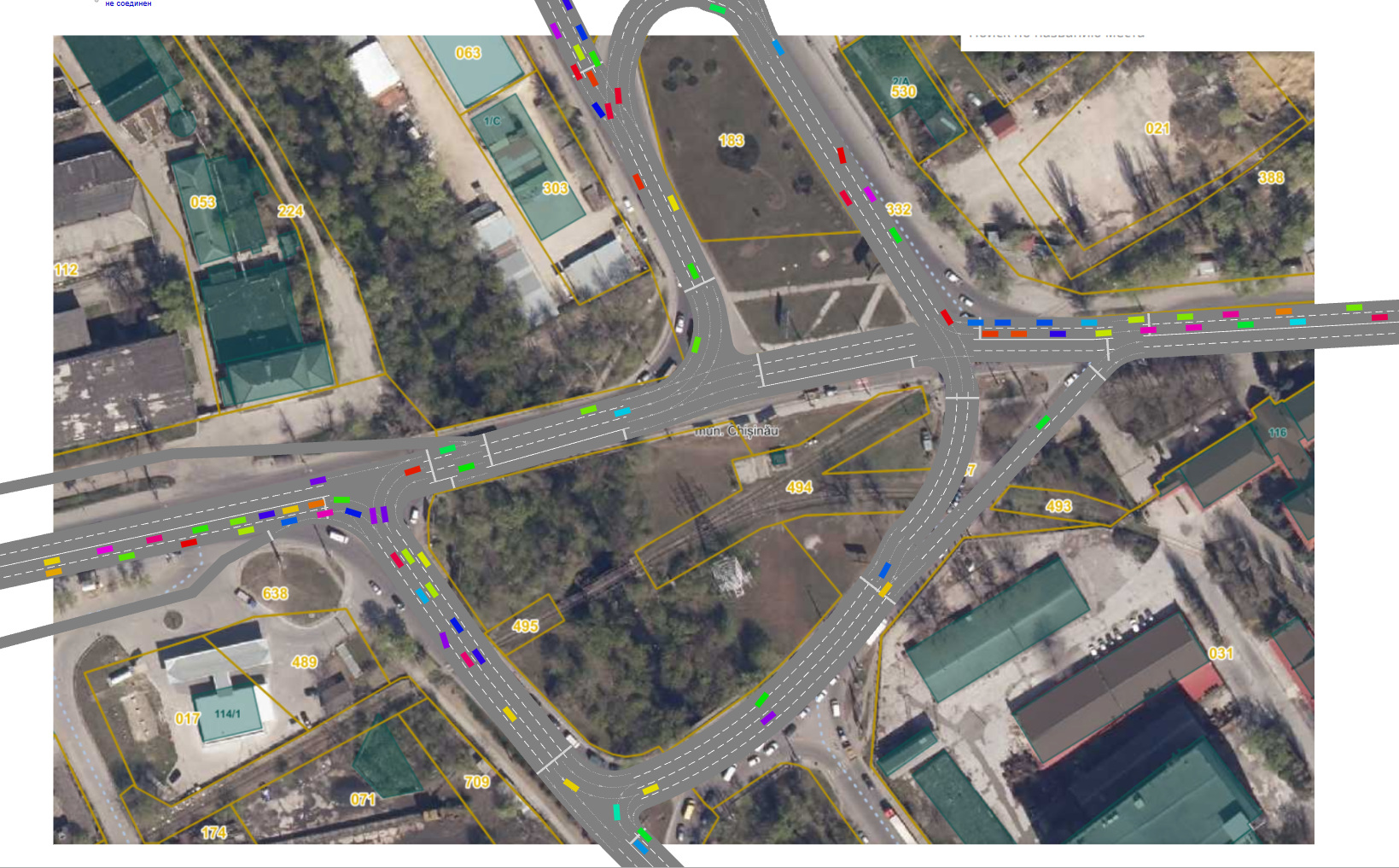 Симуляция перекрёстка возле Табачного комбината Кишинева (улицы Измаильская - Каля Басарабией - Каля Мошилор - Вадул-луй-Водская).