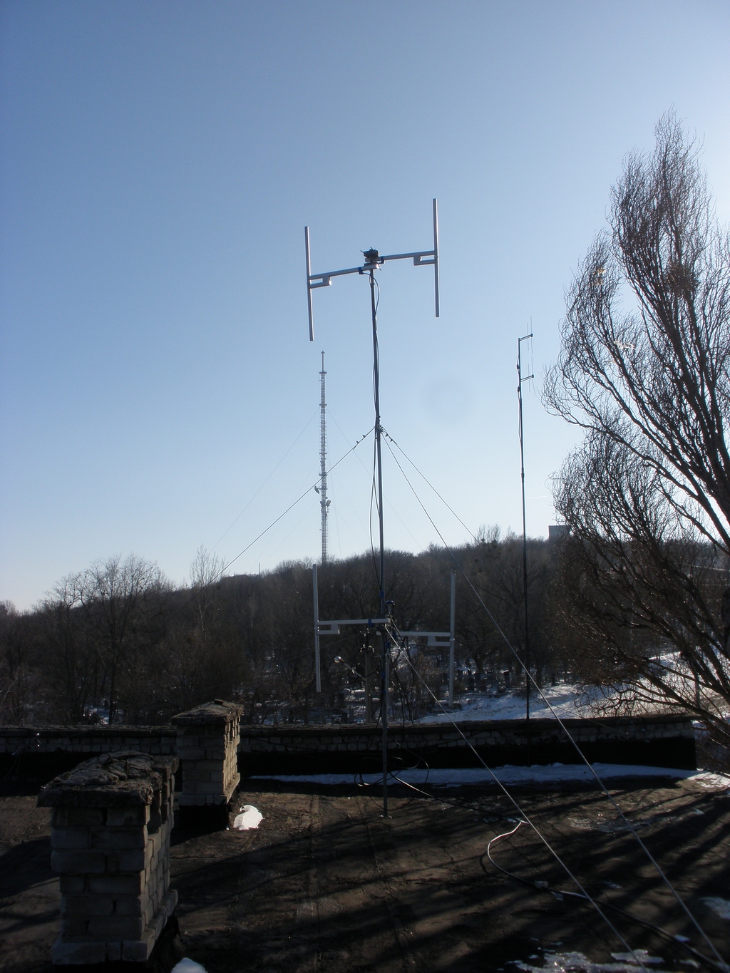 Откуда такая циферь? Я думаю,что будь там 0,5кВт в 12 км от Изюма ловилось бы чуть получше Не в мощности счастье, Frocus прав, там антенна стоит на 3х этажном здании высота мачты всего то около6 м стоит 4 диполя, которые висят там если оч мягко выразиться - СОВСЕМ неправильно! 2 диполя стоят на высоте плеч человека и направлены в разные стороны, а два на верхушке и вместо того, чтобы мощность складывалась (висели бы они правильно) с ней вообще неизвестно что происходит т.к. несоблюдено ни одно правило установки антенн. нельзя вешать 2 антенны в разные стороны на одной высоте, нужно соблюдать определенное расстояние между диполями(между этажами) и тп... а там все так как и у нас в стране через Ж.... вот когда антенна стояла на ИОМЗе с новой мачтой там было все правильно. Еще вопрос где именно в 12 км Вы принимали? И по поводу мощности сравните прием с 106,5 (он не сильно отличается за городом сейчас) а мощность то там в 20 раз менее! А циферь достоверная (не будет же на экране передатчика брехню писать))) Внизу прикрепляю фото антенны непосредственно с крыши. |