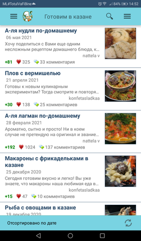 Чем хорош казан, готовит все, и вкусно ! Это не скороварка, вкус другой. В скороварке все быстро, "плоско". Температура... В казане другое, это чугун. Долго греется, долго остывает. Вкус, как в печи при томлении. А куда спешить? Заложил продукты, через час готово. Печку оставляем на подогреве. И еще пару часов горячее. Казанная мультиварка. Рецепт супа - его нет. Идет все, на что упал взгляд. И в любой кобинации. База : - лук - картошка - мясо / курица / рыба - масло, соль, сахар - зелень - и т. д. ![]() ![]() ![]() Помню мама, бабушка - все рецепты карандашом в тетрадке. Папа готовил два блюда - кашу в скороварке, и яичницу. Ну и хватит ! А сейчас приготовления везде, даже в смартфоне. Загрузил, и пользуйся ! ![]() ![]() -------------------- лучшее изобретение человечества - это музыка и интернет !