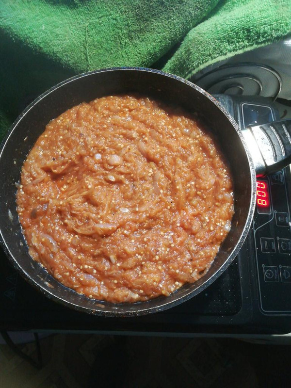 Получается очень вкусная икра . Берем баклажаны , отвариваем . Я варил в скороварке 15 мин. ![]() Обжариваем лук . ![]() Снимаем шкурку , измельчаем , добавляем баклажаны к луку . ![]() ![]() Добавляем пару ложек томатпасты. ![]() Можно добавить отваренный болгарский перец . ![]() ![]() Вкус можно корректировать . Вкусняшка готова , пробуем ! ![]() -------------------- лучшее изобретение человечества - это музыка и интернет !