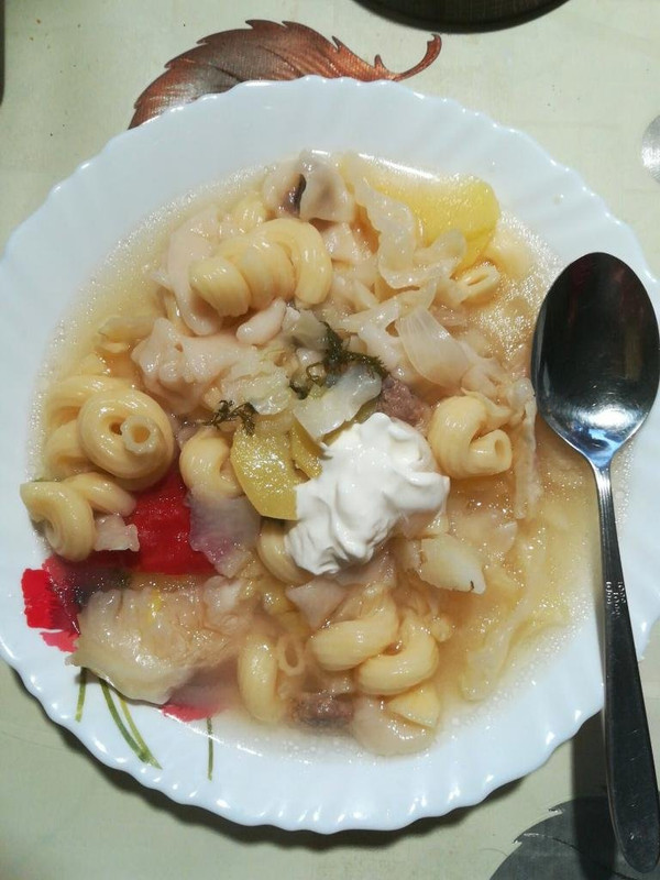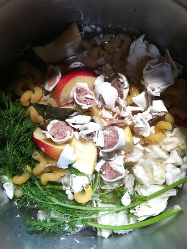 Время варки 23 мин. Ингредиенты : ( пропорции любые ) Пельмени ( разрезать для навара ) Капуста ( можно квашеную ) Морковь Лук Макароны Картофель Яблоко Специи Укроп Чеснок Соль / сахар Рассол от помидоров / огурцов - ( для вкуса ) Масло раст. ![]() ![]() -------------------- лучшее изобретение человечества - это музыка и интернет !