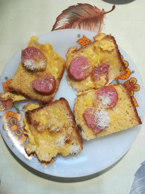 Хлеб - сковородка - колбаска - сыр . Обмакиваем во взбитые яйца . Можно добавить кетчуп , горчицу . ![]() ![]() -------------------- лучшее изобретение человечества - это музыка и интернет !