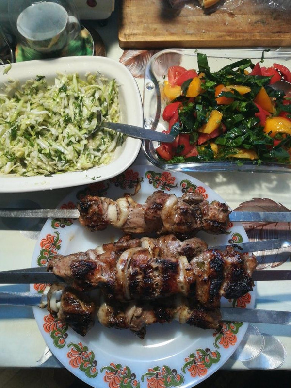 Мясо купили уже замаринованное в магазине . Оказалось очень приятным и мягким . ![]() Жарил на электрошашлычнице на веранде , на улице ветер . ![]() Получилось очень вкусно ! ![]() -------------------- лучшее изобретение человечества - это музыка и интернет !