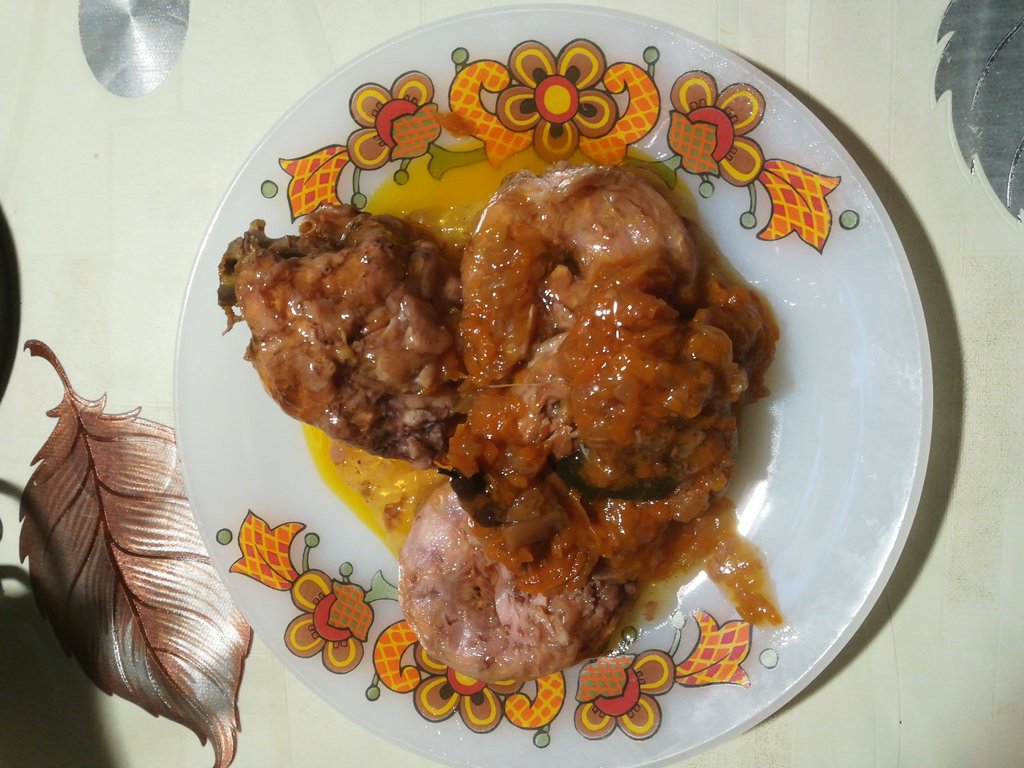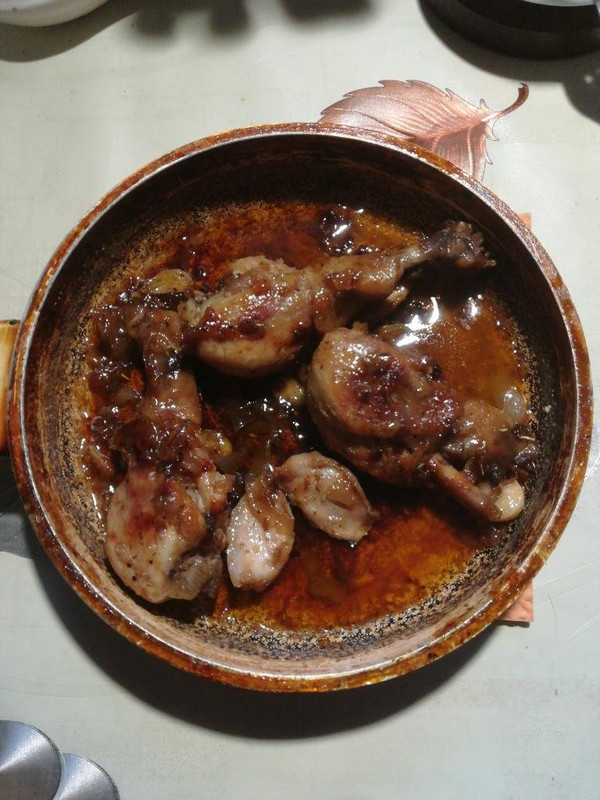 Очень вкусная ! Маринуем как на шашлык ( несколько часов ). Добавляем уксус . ![]() Курицу с маринадом на сковородку . Начинаем тушить , потом чуток водички . ![]() В процессе добавляем чеснок . Ближе к концу приготовления смазываем сиропом от варенья . ![]() Вкус кисловато-сладкий с примесью специй . -------------------- лучшее изобретение человечества - это музыка и интернет !