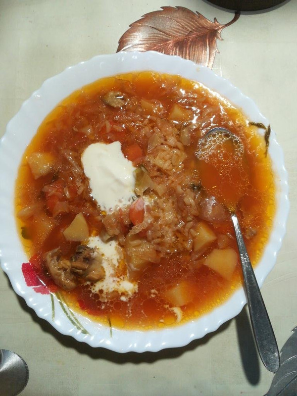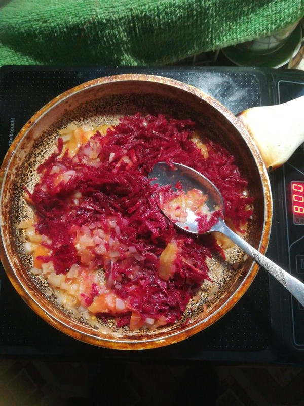 Получился очень вкусный ! Потому , что сначала отварил куриные спинки . Получился бульон + мясо . Бульон для борща . Потом все как обычно . Свекла , лук , морковь , уксус , сахар , специи ... Чтоб был еще краснее , надо убавить время . Или добавить томатпасту . Или подгружать зажарку под конец готовки . В скороварке готовим 24 мин. ![]() ![]() Часть борща перелил в термос . Вечерком открыл , а он настоялся , еще вкуснее ! ![]() -------------------- лучшее изобретение человечества - это музыка и интернет !