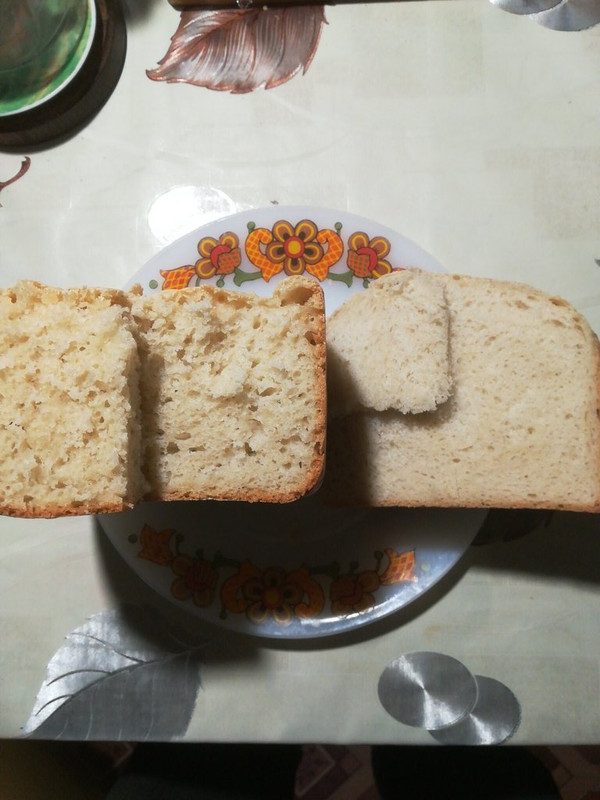 Интересный вкус . Рецепт для хлебопечки , можно и так выпекать . Дрожжи - 1,3 ч.л. ( быстрые ) Мука - 400 г. Сахар - 3,3 ст.л. Соль - 2,3 ч.л. Масло - 2,6 ст.л. Вода теплая - 250 мл. ![]() В хлебопечке есть два варианта выпечки . Программа , там понятно . Но хлеб получается с мелкими порами , пушистый . Можно в ручном режиме . Хлеб совсем другой , и цвет , и крупные поры , и мякоть другая , немного "резиновый" , как хлеб 70-х . Вкусный . Вот слева ручной режим , справа программа . ![]() Выпечка в ручном режиме . Закладываем в ведро ингредиенты . Включаем режим ЗАМЕС. Пусть замесит до колобка и выключаем . Включаем режим ВЫПЕЧКА. Пусть подогреет ведро 3 мин. Выключаем . Через 30 мин. опять подогрев пару минут . И так несколько раз . Через 2 часа включаем режим ВЫПЕЧКА на 55 мин. Все , хлеб готов ! -------------------- лучшее изобретение человечества - это музыка и интернет !