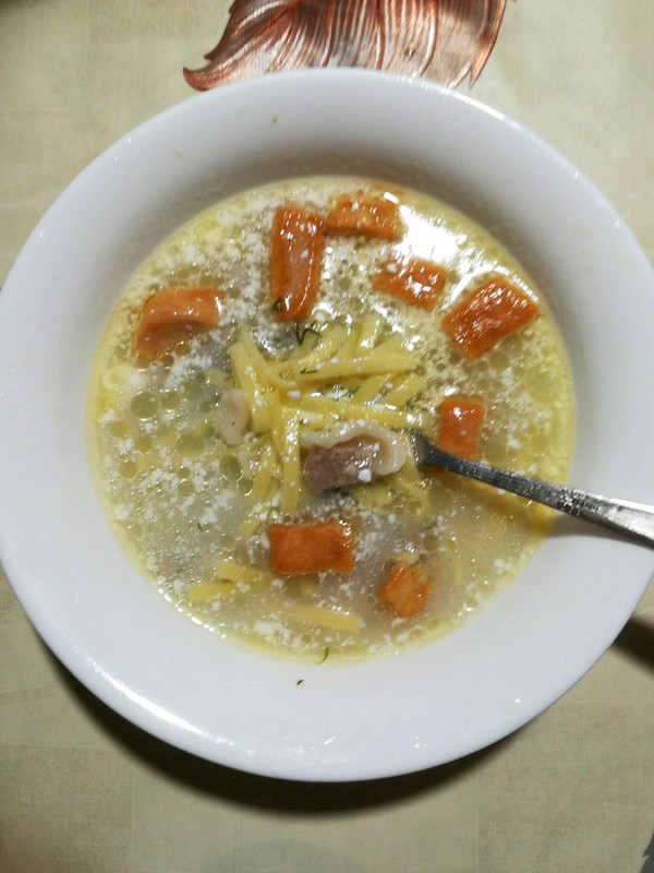 Вкусный и быстрый супчик . Показано на 1 порцию . Щепотка лапши. Пельмени - 3 ( порезать для навара ). Укроп . Масло , соль . Сметана . Сухарики ( соленое печенье ). Скороварка 8 мин. ![]() ![]() -------------------- лучшее изобретение человечества - это музыка и интернет !
