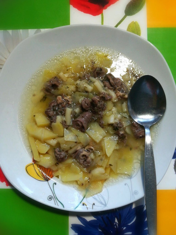 Суп вкусный , витаминный . В куриных сердечках много витаминов , минералов , аминокислоты . Содержится большое количество таурина. Именно это вещество способно предотвратить риск возникновения и развития заболевания сердца и сосудов. Также таурин способен снизить показатели холестерина в крови. Варить их надо долго . В скороварке варил 40 мин. Не супермягкие , но нормальные . Ингредиенты : картофель лук макароны куриные сердечки укроп Полная разморозка сердечек не требуется . Промываем горячей водой , режем ломтиками. Остальные ингредиенты тоже режем тонко . ![]() -------------------- лучшее изобретение человечества - это музыка и интернет !