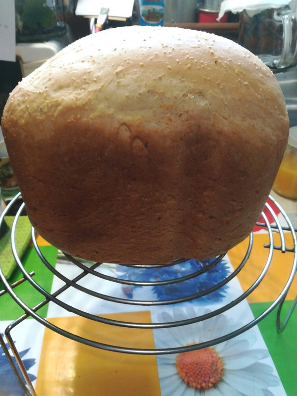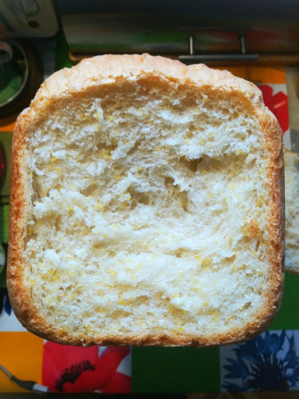 Хлеб получается вкусный , мягкий , чуток сладковатый . Как бутербродный . Рецепт : Дрожжи сухие - 1 ч.л. Мука пшеничная - 400 г Мука кукурузная - 50 г Сахар - 2 ст.л. Соль -1 ч.л. Масло подсолнечное - 40 г ( это 2 ст.л. + 1 ч.л.) Вода 250 г Готовил в хлебопечке Panasonic SD-2511, программа " основной" , время 4:00 . Размер L . Можно выпекать в электродуховке . ![]() ![]() -------------------- лучшее изобретение человечества - это музыка и интернет !