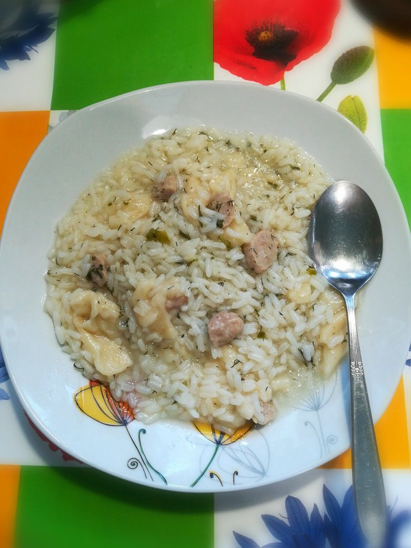 Все просто и вкусно . Быстро готовится и с большим удовольствием кушается . Рис использую итальянский Riso Originario , очень вкусный . Готовится 15-20 мин. У этого сорта риса зерно небольшого размера, округлой формы. У него плохая термостойкость и повышенная липкость, и именно эти свойства делают его идеальным ингредиентом для приготовления некоторых блюд . Для наполнения вкуса использованы резаные пельмени , укроп . Маленький кусочек сливочного масла , перца. ![]() -------------------- лучшее изобретение человечества - это музыка и интернет !