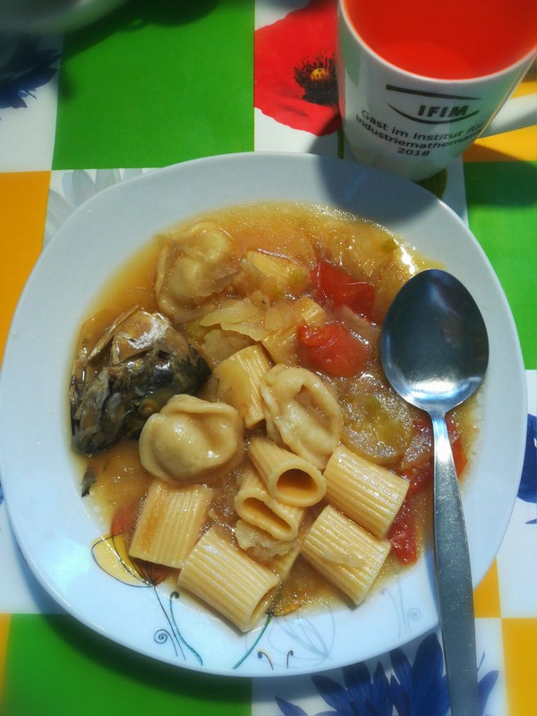 Со вкусом понятно , наварился . Готовил в скороварке 25 мин. Ингредиенты : голова скумбрии ( вынуть жабры ) картофель лук морковь свекла помидор макароны пельмени манка (щепотку) специи зелень можно чуть сока лимона + сахар ![]() -------------------- лучшее изобретение человечества - это музыка и интернет !