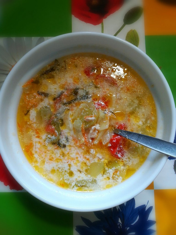 Очень вкусный и быстрый супчик . Готовится в скороварке 21 мин. Лапша из твердых сортов пшеницы . Творог домашний . Добавляем в конце . Стравливаем давление , открываем крышку , ( бульон кипит ) , добавляем творог . Размешиваем . Творог превращается в плавленный сыр . Очень вкусно и оригинально . ![]() -------------------- лучшее изобретение человечества - это музыка и интернет !