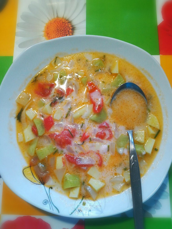 Быстрый - готовится в СВЧ печке 12 мин. Вкусный - таки да , вкусный . Игра помидор , сладкого йогурта , ароматов . Готовится быстро , все режем мелко . Картофель Морковь Лук Огурец перец сладкий Пельмени ( разрезать ) *можно добавлять другие фрукты/овощи, специи по вкусу *на 1 порцию ![]() ![]() Готовится в таком Keep-N-box'е 1220 мл пресс - отжимаю помидоры , удобно ![]() -------------------- лучшее изобретение человечества - это музыка и интернет !
