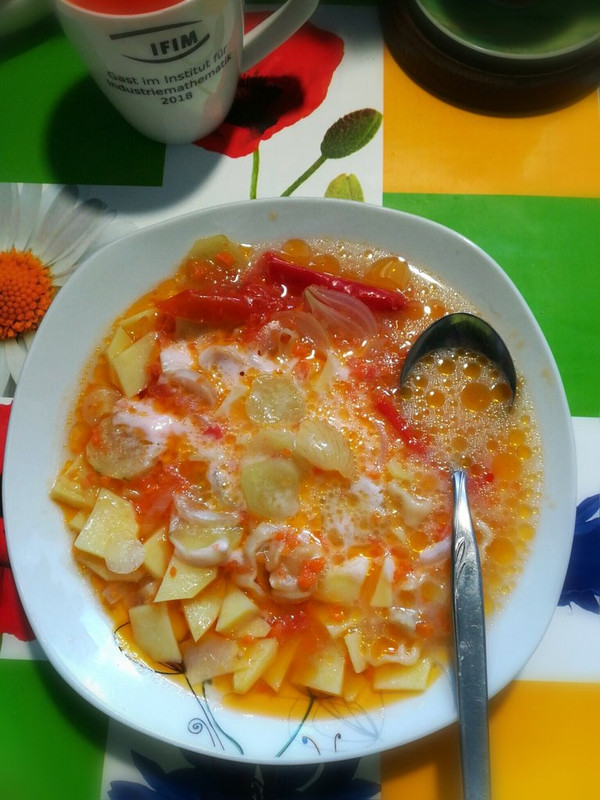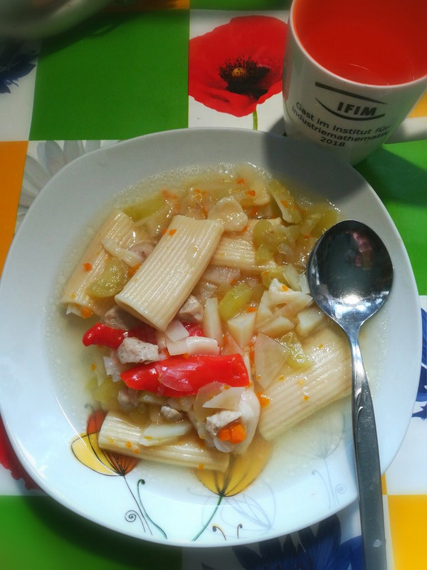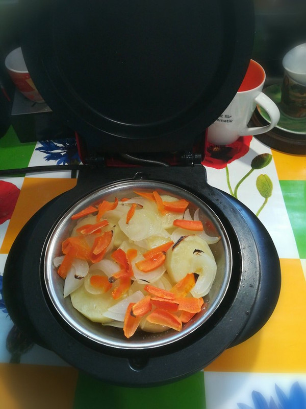 Нехватка времени на приготовления , а кушать надо . Основа - картофель, лук, морковь . Нужны ещё добавки . Макароны , пельмени , бол.перец , и т.д. Пропорции не важны . Время . Можно и за 10 мин. Можно и за 25 мин. Поразному наварится . Всё закинули , воды , масла , соли . Ничего не жарим . Нажимаем на таймер . Получается вкусно . ![]() -------------------- лучшее изобретение человечества - это музыка и интернет !