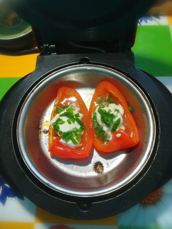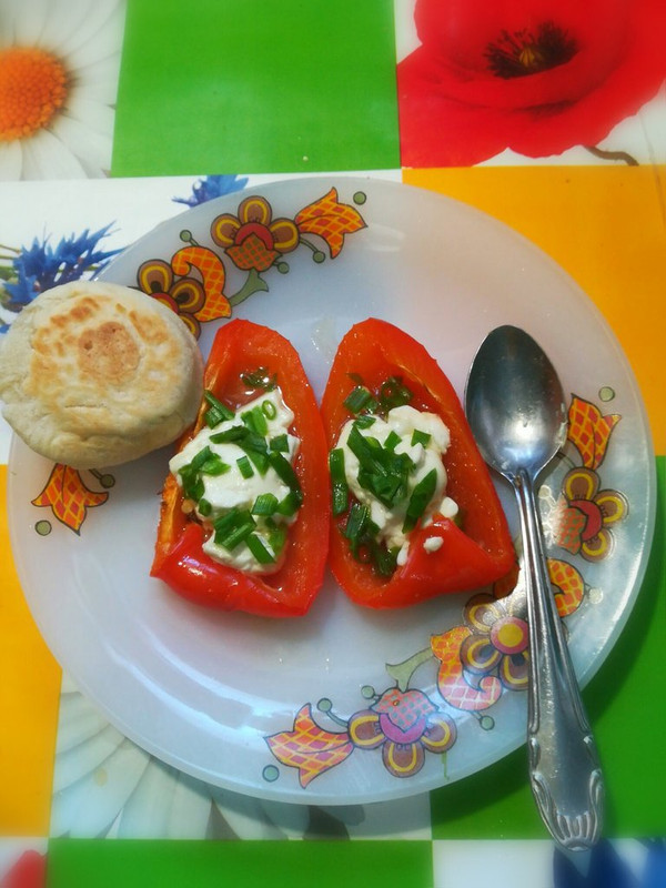 Быстро и вкусно ! Перец сладковатый , творог превращается в плавленый сыр . Запекал в электросковороде 15 мин., в конце добавил творог с луком . ![]() ![]() -------------------- лучшее изобретение человечества - это музыка и интернет !
