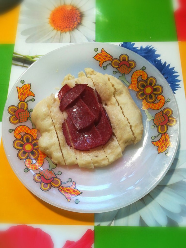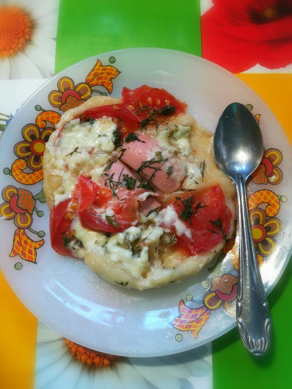 Тесто жидковатое Муки надо побольше или жидкости поменьше Я делал,как не странно но самая нормальная основа для пиццы получается если делать тесто как на обычный хлеб Нет , тесто как раз то что нужно .Оно резиновое , можно на метр растянуть . Неудобно конечно , растягиваю , оно стягивается . Но вкусное ! Я уже как-то наловчился , отрываю кусок , отрезаю ножом . Растянул ктай , сразу воткнул ломтик помидора или колбаску .Ну и по кругу . С другой стороны удобно , тесто в холодильнике , оторвал , приготовил . Печется 15 мин. Снизу подрумянивается , хрустящее . Сверху нет , ничего , пойдет . Пеку в такой штуковине .Там температура 170 - 195* С. ![]() Вот с кусочками колбаски . Вкусно . ![]() А если пицца зажаренная , то без СВЧ печки не ... Зубы сломаешь . -------------------- лучшее изобретение человечества - это музыка и интернет !