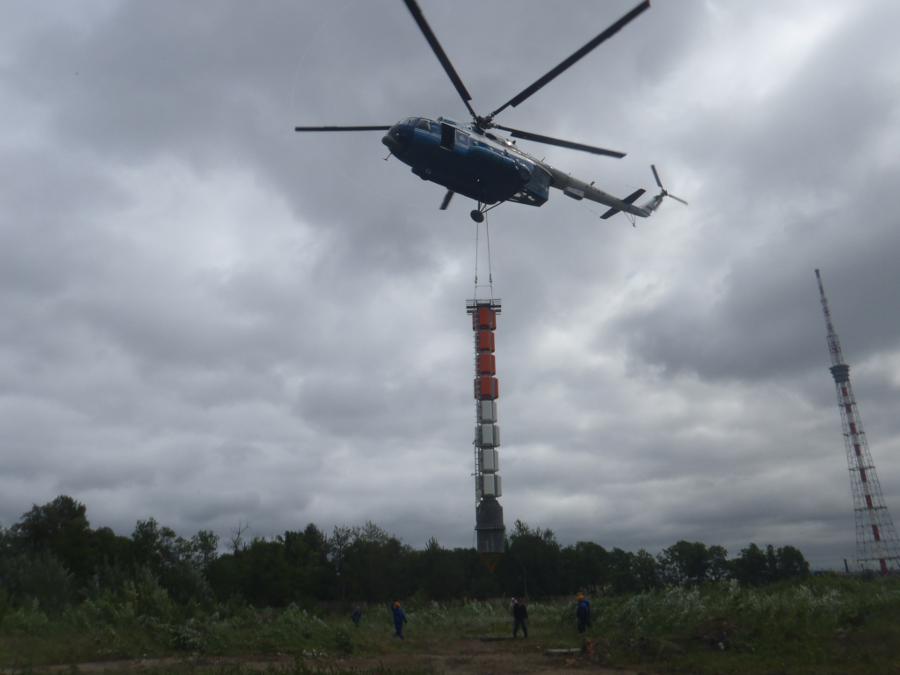 Цитата Новую широкополосную ТВ антенну установили на петербургской телебашне 28.06.2011 Санкт-Петербург – Москва 28 июня на верхней площадке на высоте 301,5 м телевизионной башни «Ленинградского радиотелевизионного передающего центра» (петербургская телебашня, Санкт-Петербург) была установлена новая широкополосная антенна цифрового телевизионного вещания ДМВ диапазона. Работы провел Санкт-Петербургский филиал РТРС (Региональный центр) в соответствии с планом строительства сети цифрового эфирного телевизионного вещания на территории Санкт-Петербурга и Ленинградской области. С самого утра погодные условия благоприятствовали проведению высотных и вертолетных работ: переменная облачность, без осадков, температура около 17 градусов, слабый ветер 4-5 м/с, видимость - хорошая. К 7.00 утра монтажники-высотники на верхней площадке телебашни завершают последние приготовления к демонтажу старой антенны. 07.41 – вертолет МИ-8 с высококлассным экипажем зависает над верхней площадкой телебашни. 07.47 – начинается транспортировка старой антенны на посадочную площадку, расположенную на правом берегу Невы в 700 м от телебашни. 12.04 – монтажники-высотники заканчивают работу по подготовке верхней площадки телебашни к установке новой опорной металлической рамы под широкополосную антенну ДМВ диапазона. 12.13 - в течение одной минуты, с ювелирной точностью, вертолет опускает раму под новую антенну на верхнюю площадку телебашни. 14.39 – подъем новой антенны. 14.44 - начинается заключительный этап работ: крепление основания антенны, подключение фидера и системы молниезащиты. Установку новой антенны Региональный центр РТРС произвел по плану, без увеличения сроков технических работ. После окончания работ, в 15.00 было возобновлено эфирное теле- и радиовещание в Санкт-Петербурге и части области. Новая современная широкополосная антенна ДМB диапазона позволяет обеспечить одновременную трансляцию программного пакета первого мультиплекса и двух аналоговых программ на 35 ТВ-канале (ранее 35 канал в Санкт-Петербурге не использовался – ни в аналоговом формате, ни в цифровом). Размещение антенны на самом «топе» телебашни обеспечит максимально возможную зону покрытия цифровым телевещанием территории Санкт-Петербурга и прилегающей части области. ![]() ![]() ![]() ![]() |