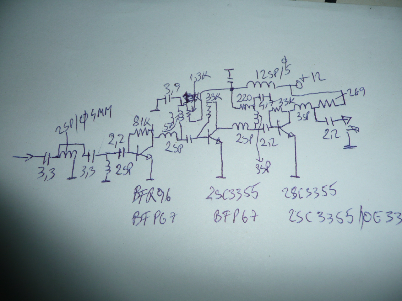 Nu pot sa spun sunt as in electronica si ca sunt cel mai priceput... totusi daca ma uit bine la schema originala chiar nu pot sa inteleg cum functiona acest amplificator In primul rand ce cauta R2 si R3, din emitoarele celor 2 tranzistoare, conectate la potentialul V+ ... de ce ??? ... anyway, ce-a fost a fost ... acum sa vedem schema "tunata" p.s. in afara de bfp67, si 2sc3355 ce alte tranzistoare cu zgomot mic poti recomanda ? merci |