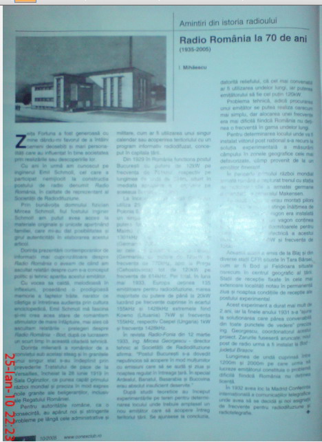 Цитата În anul 1941 s-a construit la Iaşi primul post de radio teritorial din ţara noastră. „Radio Moldova” era un post de emisie construit de firma italiană Magnet Marelli în licenţă americană R.C.A., cu tuburi electronice italiene răcite cu aer, ceea ce constituia un avantaj datorită siguranţei în funcţionare. Staţia, în întregime automatizată, avea o putere de 5kW şi emitea pe lungimea de undă de 550-160 kHz. „Radio Moldova” se auzea mai bine la Bucureşti decât „Radio Bucureşti” la Iaşi, cu toate că acesta avea o putere de 12 kW şi o antenă de 96 m, dar nu trebuie uitat faptul că din anul 1929 până în anul 1941 tehnica evoluase http://www.proradioantic.ro/index.php?x=ar..._stire=18#_ftn2 |