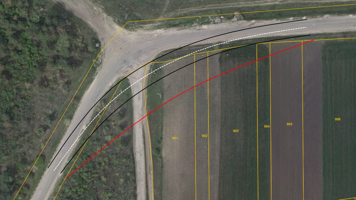 Нарисовал ориентировочный прогнозный вариант спрямления дороги на холме при въезде в Михайловку. Заметно, что затрагиваются лесонасаждения Moldsilva и как минимум 5 частных сельхозугодий.
