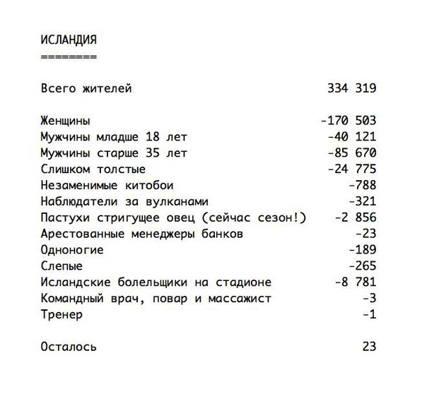Всё. 1:2. Исландия выходит в 1/4 финала и сразится с Францией. Немного статистики: 23 человека - количество игроков в сборной |