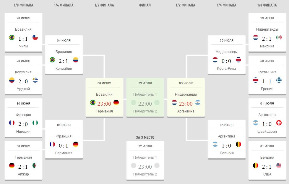 darvil Прогноз на 1/4 финала ЧМ 2014.